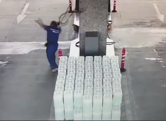 粗心司机没加满油就开车,工作人员被油枪砸头流血不止