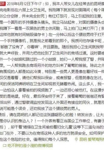 爱琴海购物公园偷拍女子如厕 西山警方毫不含糊的把他拘了