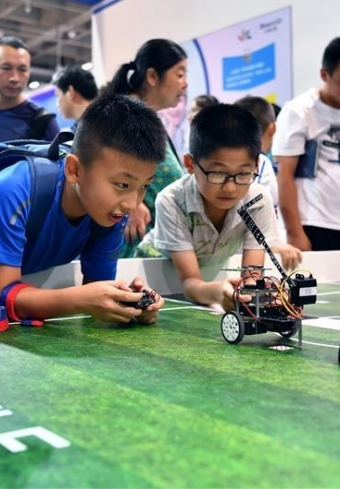 2018世界机器人大会在京开幕 机器人变成孩子玩伴!