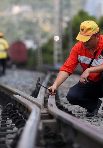 实拍高温下的“钢轨医生” 日行10公里进行探伤作业