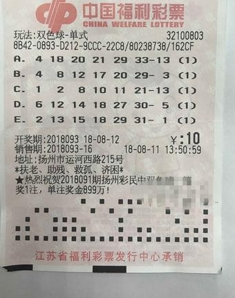 8月12日,福彩双色球第2018093期开奖,开出的红球号码为:4、18、20、21、29、33,蓝球号码为:7。当期全国双色球共中出一等奖3注,二等奖78注,其中1注二等奖花落扬州广陵。