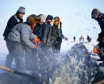 呼伦湖的冬季捕鱼从每年12月末一直延续到次年3月,4个月的产量是全年产量的80%。零下30多摄氏度的低温中,渔业工人使用传统的冰下大拉网技术,每日上演从下网到收获的全套捕鱼过程。然而,面对生态环境逐渐退化的呼伦湖,这项彰显技术与体能的传统捕鱼方式也
