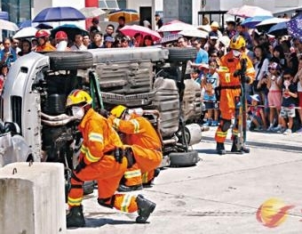 中新网8月6日电 据香港《文汇报》报道,为庆祝香港消防处成立150周年,让市民了解更多消防处的工作和人员的培训,消防及救护学院5日举行开放日,早上有过千名市民持券排队入场,场面热闹。主办单位全日安排了多项训练示范及车辆巡游,其中水上事故拯救及坍塌