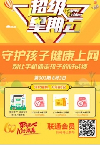 如何让孩子健康合理使用网络,成为大多数家长困扰头痛的问题,很多未成年人缺乏信息判断能力,过度使用网络,沉迷游戏等造成了个人与家庭的伤害。对此,广东联通秉承新央企的社会责任感,关注未成年人健康上网,在2018年8月3日“超级星期五”活动中,携手恒安