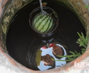 申城高温,郊区农民有独特的消暑方式。昨天下午,金山区山阳镇长兴村4组农民徐阿姨正在用井水浸西瓜,准备与小孙子一起食用,井水“冰镇”过的西瓜消暑又美味。