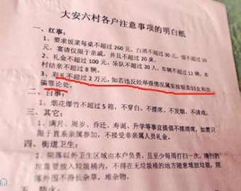 “国务院文件规定,女方向男方索要礼金超8万元以上的,属人口买卖违法行为,可判刑5个月罚款5万元……”