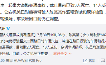 杭州车辆失控事故3死14伤 目击者:碎片满天飞像爆炸