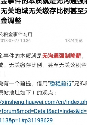 最近,华为某些地区的员工不是太开心,因为之前的公积金缴存比例是12%,现在突然下调至5%,有华为员工为此算了下到手收入,相当于降薪了千把块,他是这样算账的: