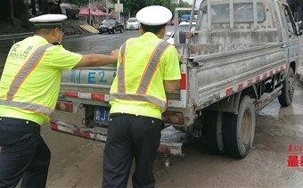 7 月 27 日 14 时许,天下起一阵急雨,交警岱岳区大队范镇中队民警发现辖区铁路桥下有大量积水,于是在铁路桥下将车辆提前分流,并帮将涉水车辆推到安全地带。