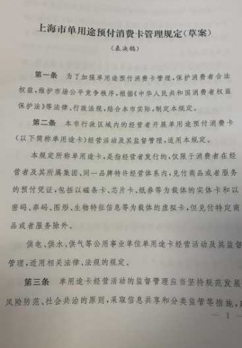 今天上午召开的市十五届人大常委会第五次会议,表决通过了《上海市单用途预付消费卡管理规定》。作为国内首部该领域的地方性法规,规定不仅拓宽了单用途卡的定义,更确立了一套单用途预付卡的监管工作机制。