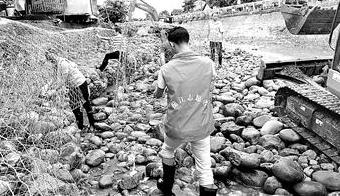 今年7月以来,四川省成都市蒲江县普降大暴雨,个别乡镇达到特大暴雨级别。灾情发生后,该县纪检监察干部第一时间奔赴抗洪抢险一线,与群众一起迎战洪涝灾害。图为纪检监察干部在协助村民修复河道设施。李万勇 摄