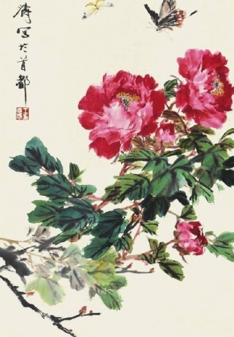 国画大师王雪涛(1903~1982)中国现代著名小写意花鸟画大师。 他画的牡丹花雍容华贵,艳而不俗。承前启后。