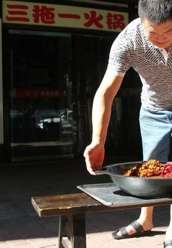 重庆一男子40℃高温下 不用炉子全凭太阳暴晒煮开火锅烫菜吃
