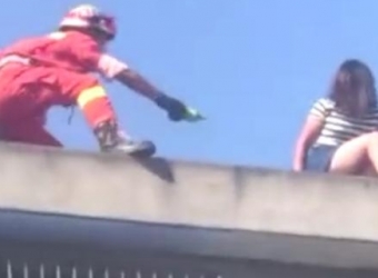 7月20日,在浙江浦江,一女子与丈夫吵架后一时想不开,跑到楼顶想要跳楼轻生。