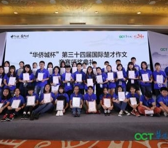 7月16日,“华侨城杯”第34届楚才作文竞赛颁奖典礼暨台港澳夏令营开营仪式在武汉玛雅嘉途酒店盛大举行。来自武汉、台湾、香港、澳门、新疆等地近两百名获奖学生代表、学校代表齐聚一堂,同台受奖。