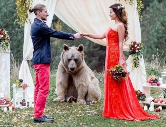 林子大了什么鸟都有,辽阔大地包罗万象,无奇不有,这不什么样的人也存在,什么事也都会发生!婚礼的焦点一直是在一对新人的身上,但在这在一个特殊的日子里,在亲朋好友的见证下,一对外国新婚夫妇被一只棕熊抢了风头。