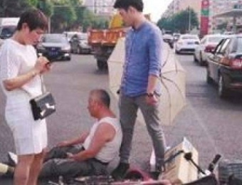 16号中午,沈城室外温度有32℃。一十字路口处发生一起交通事故,一辆私家车和一辆电动车发生剐蹭,骑电动车的是一位60多岁的老爷爷,老人摔倒在地也站不起来。