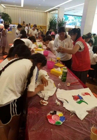 7 月 15 日,在中铭 · 金沙湾营销中心举办了以 "爱在初夏,手绘幸福" 为主题的、创意手绘 T 恤 DIY 活动。虽然屋外的阳光炽热,但是依然抵挡不住小朋友们参与的热情。