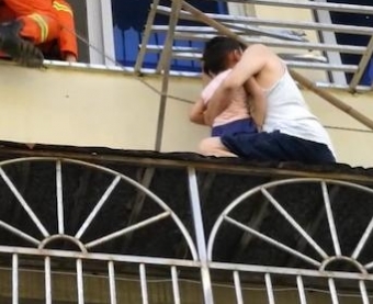 7月13日下午16时05分,浙江省宁波市慈溪金南小区1单元内发生惊险一幕:一位5岁的男孩头部被防盗窗卡住,被挂在距离地面四五米高度的二楼阳台,双脚悬空动弹不得。