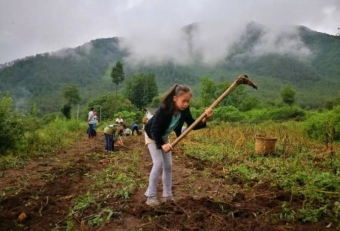 昨晚的暴雨把大山的村落洗的更加漂亮!勤劳的村民开始新的征途了,需要把丰收的土豆驼到集市上卖换取油盐酱醋茶等生活必须品变形计的小伙伴也该开启抢收土豆的重任了,早上很早起床就开始第一次劳作,然后才能吃早饭,孩子们奔向了土豆地,簸箕,背篓,双手齐