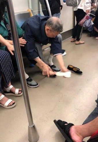 7月11日早上,成都下起了暴雨,不少上班族被雨困住。成都地铁上有人拍到很暖的一幕:老奶奶鞋子被雨淋湿,同行的老爷爷脱下自己干的鞋子和袜子,赶忙给她换上,自己则换穿湿掉的鞋子,毫不在乎周围人的眼光。