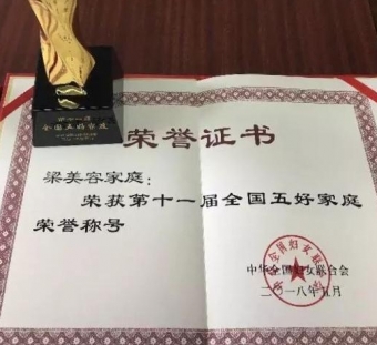 记者7月9日从高栏港区获悉,日前,由全国妇联主办的2018年度全国“最美家庭”评选中,该区平沙镇张秀清家庭获评全国“最美家庭”;另外,斗门区梁美容家庭荣获2018年“全国五好家庭”光荣称号。