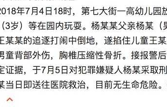 7月4日18时,河北廊坊某幼儿园放学后,儿童王某某与杨某某等在园内玩耍。