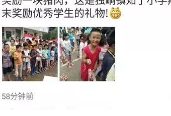 近日,微姐在朋友圈看到网友发出这样一则有趣的内容:接地气,小学生期末考试不但得奖状还奖励一块猪肉。这是广西柳州三江县独峒镇知了小学期末奖励优秀学生的礼物!