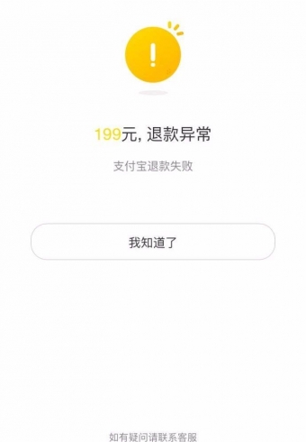 7月3日,《消费者报道》接到网友投诉,ofo小黄车APP内操作多次无法退押金,“退押金进度”页面显示“199元,退款异常,支付宝退款失败”的字样。