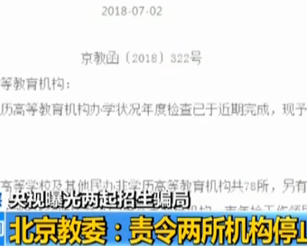 6月23日,央视新闻频道曝光了北京民族大学、北京国际经贸研修学院伪造虚假高校网站、篡改招生简章的行为。昨天(3日),北京市教委作出回应,对两所机构分别作出责令停止招生的行政处罚。
