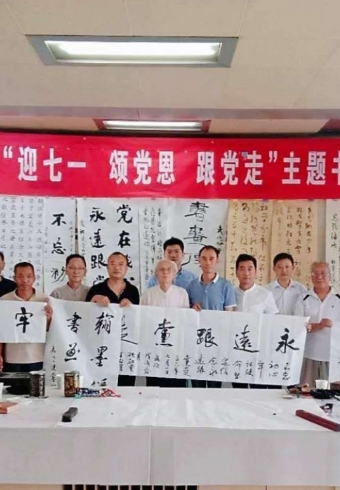 本网驻马店讯 ( 首席记者 肖 震 记者 余琦 通讯员 刑官印 ) 仲夏的豫南大地,草木葱郁、夏花绚烂。连日来,河南省驻马店市正阳县书法家协会,为迎接中国共产党97周年华诞,举办了"‘迎七一,领党恩,跟党走"主题书法创作活动。
