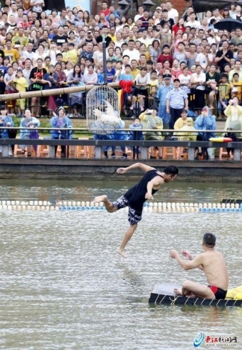 晋江端午节民俗活动“水上捉鸭”吸引来两名外国人参加
