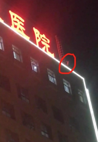 男子夜晚爬上医院楼顶,情绪激动声称要跳楼,众多群众围观,现场情况危急。经公安民警及医院保安等多方努力,男子放弃了轻生念头。