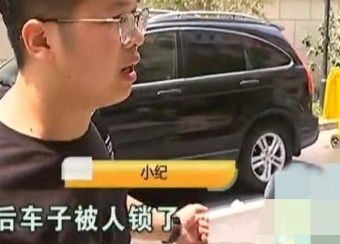 纪先生当天晚上去找女朋友,把车停在了小区楼下的停车位上,等第二天早上发现车不仅被锁了,而且车上还多了一条1米多的划痕。