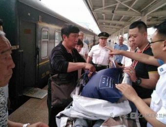 " 汽车通道、汽车通道,赶紧打开通道门,运送兰州病人的救护车到门口了。"6 月 14 日早八点,对讲机里响起青岛火车站客运值班员急促的声音,在火车站、列车等部门配合下,将患有脑梗塞的八旬兰州市民黄秀英送到了兰州铁路局青岛至兰州的 K1026 列车上。