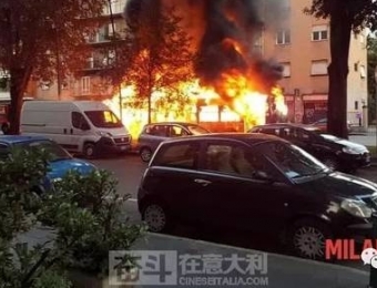 米兰:924路公交车起火燃烧,几分钟内公交被烧成骨架