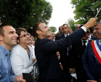 原标题:总统也爱拍!法总统马克龙手持“自拍神器”与民众合影