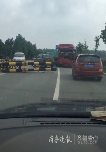原标题:莘县滨河大道一限高杆被卡车撞倒,驾驶室已变形