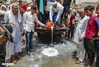 印度农民罢工把牛奶倒在大街上,却被嘲笑农民是在博人眼球
