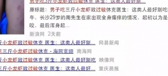 近期,一则“男子贪吃小龙虾过敏休克”的新闻刷屏朋友圈,顿时让不少人感到恐慌。这位男子吃了三斤小龙虾之后出现了全身瘙痒的情况,之后浑身起风团、呼吸急促、发生过敏性休克,最后被诊断为急性荨麻疹。