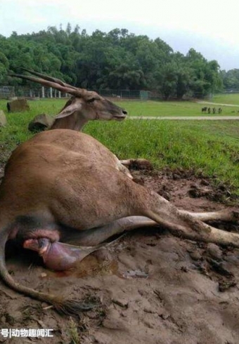 羚羊妈妈难产,工作人员前去帮忙 羚羊妈妈刚看宝宝立刻转头离开