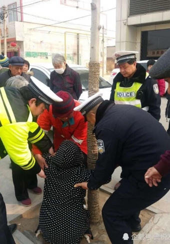 3月11日,河北隆尧县交警大队城区中队宋志杰、王立波等民警在县城太行路巡逻,当巡逻到雷海地产门口时,发现一名70岁左右老太太紧紧抱着路边小树,大口喘着气并跪倒在地上。