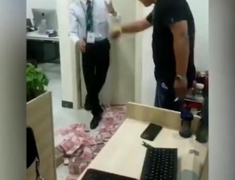一家中介门店内,白衬衣中介与黑T恤壮汉激烈争吵:“我今天就是要买!”“限购了!限购了!我有什么办法呢?”两人脚边,是一地现金。