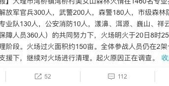 据中共大理市委宣传部官微消息:大理市湾桥镇湾桥村美女山森林火场明火已被扑灭。