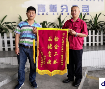 大洋网讯 今日上午,佛山市民邓先生带着一面“拾金不昧,品德高尚”的锦旗来到佛广公汽高新分公司,为佛山公交南高11线的公交车长雷志明点赞,感谢雷师傅拾金不昧并利用“朋友圈”积极寻找失主,妥善保管失物一个月后完好归还。