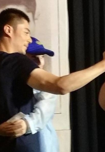 近日,霍建华忙于新片路演,有网友PO出几张霍建华在成都和粉丝互动的照片。一个热情的成都妹子突袭搂住华哥的腰,并成功合影获得粉丝关注。照片被曝出后,网友们羡慕不已:“这抱抱是怎