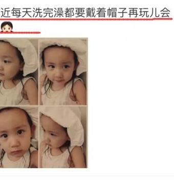 6月25日,黄磊的妻子孙莉在微博上晒出一张多妹的照片,照片中的多妹刚刚洗完澡,戴着浴帽,大大的眼睛眨来眨去超萌!
