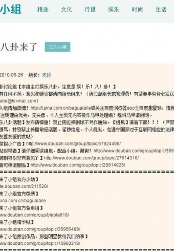 豆瓣“八卦来了”页面截图今日,一大批微博账号被关闭,“八组兔区每日爆料”也在名列其中。据悉,“八组”(简称)是豆瓣“八卦来了”娱乐讨论区的微博账号名称,靠素人爆料出名