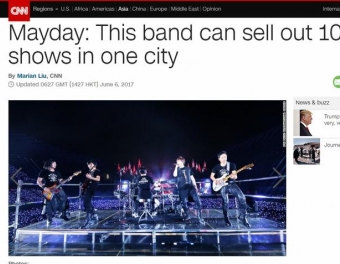 据台湾媒体6月7日报道,五月天这阵子忙着世界巡回演唱会,继2013年接受英国广播公司(BBC)专访后,近来美国有线电视CNN也有记者前往香港参加五月天的演唱会,并撰稿介绍他们,标题为“这个