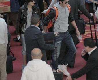 陆毅现身机场, 霸道总裁风一路为妻子鲍蕾开道, 穿增高鞋辣眼睛